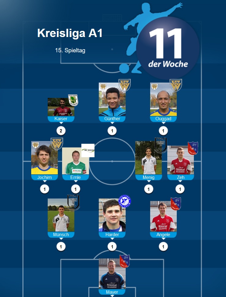 Philipp Mayer, Fabian Angele und Marius Zeh stehen stehen am 15. Spieltag in der FuPa-Elf der Woche (A1 Riß)