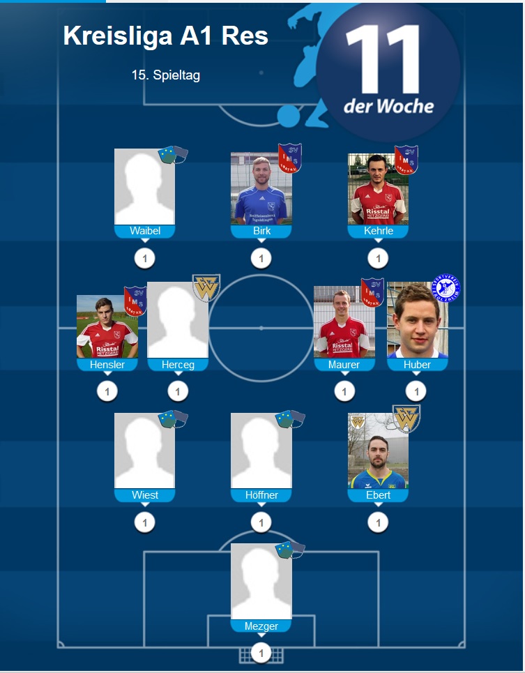 SVM II: 4 Spieler in der FuPa-Elf der Woche 13. Oktober 2015 admin Maximilian Birk, Christoph Kehrle, Markus Hensler und Andreas Maurer stehen in der FuPa-Elf der Woche (A1 Riß Reserve).